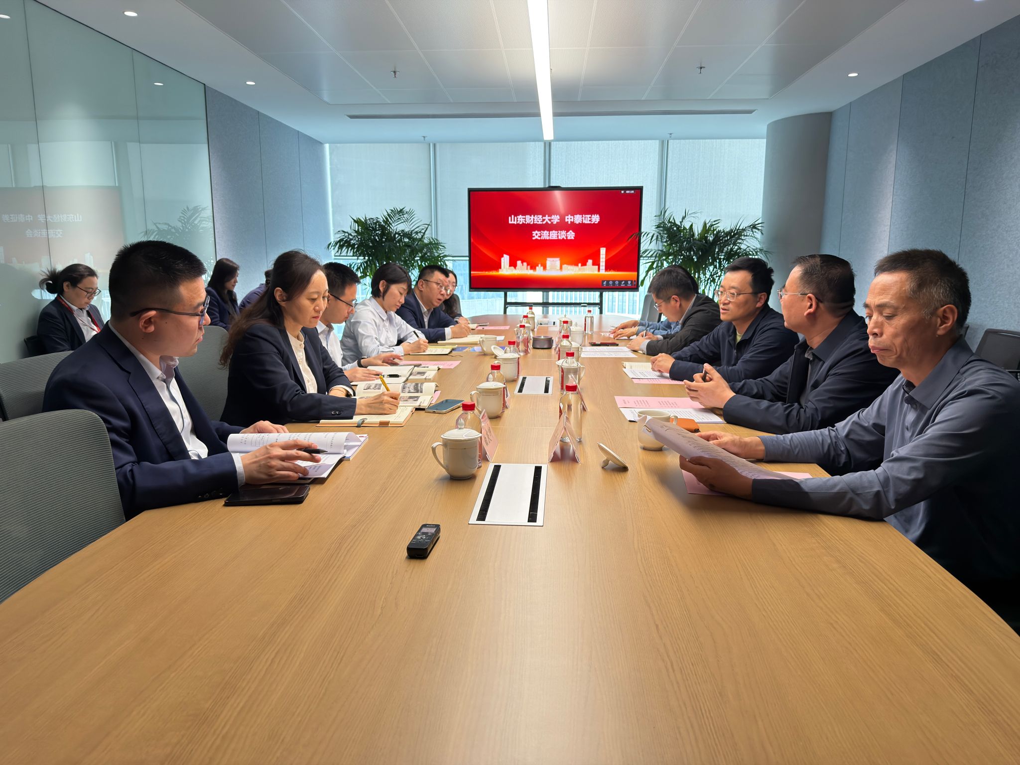 中泰证券相关负责人同时介绍了公司发展、业务布局、企业文化与人才需求,双方就党建引领、毕业生岗位对接、金融科技人才培养、教育培训等深入交流,现场气氛热烈。