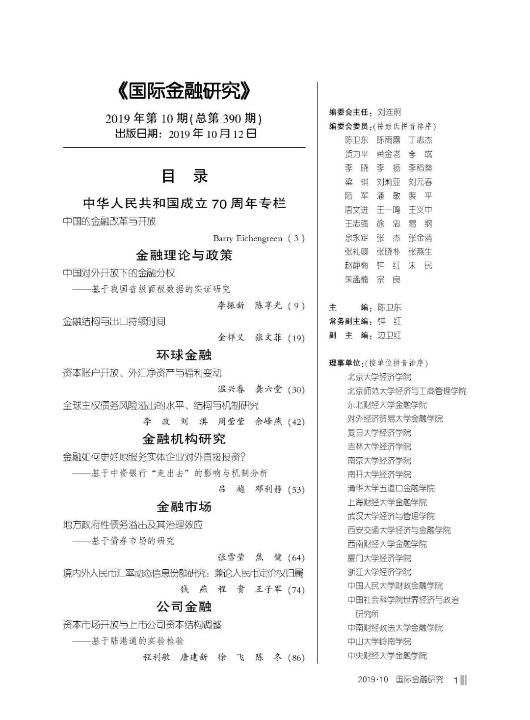 山东财经大学金融学院张雪莹教授、金融学院博士焦健共同撰写的论文《地方政府性债务溢出及其治理效应——基于债券市场的研究》在《国际金融研究》2019年第10期上发表,《国际金融研究》为我校A2类期刊。