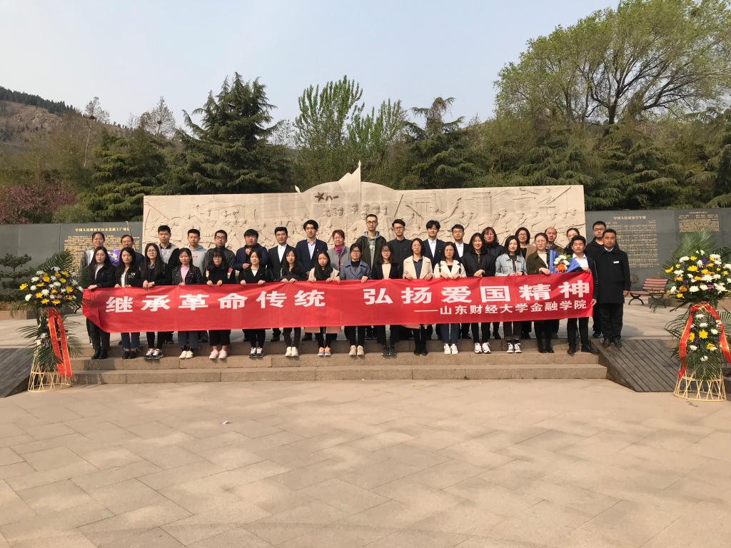 2019年4月2日一大早,金融学院党委副书记范志毅带队,金融学院教工党员代表、研究生和本科生党支部书记、学生党员积极分子代表一行四十余人来到位于长清的山东老战士纪念广场,开展学习和纪念活动。