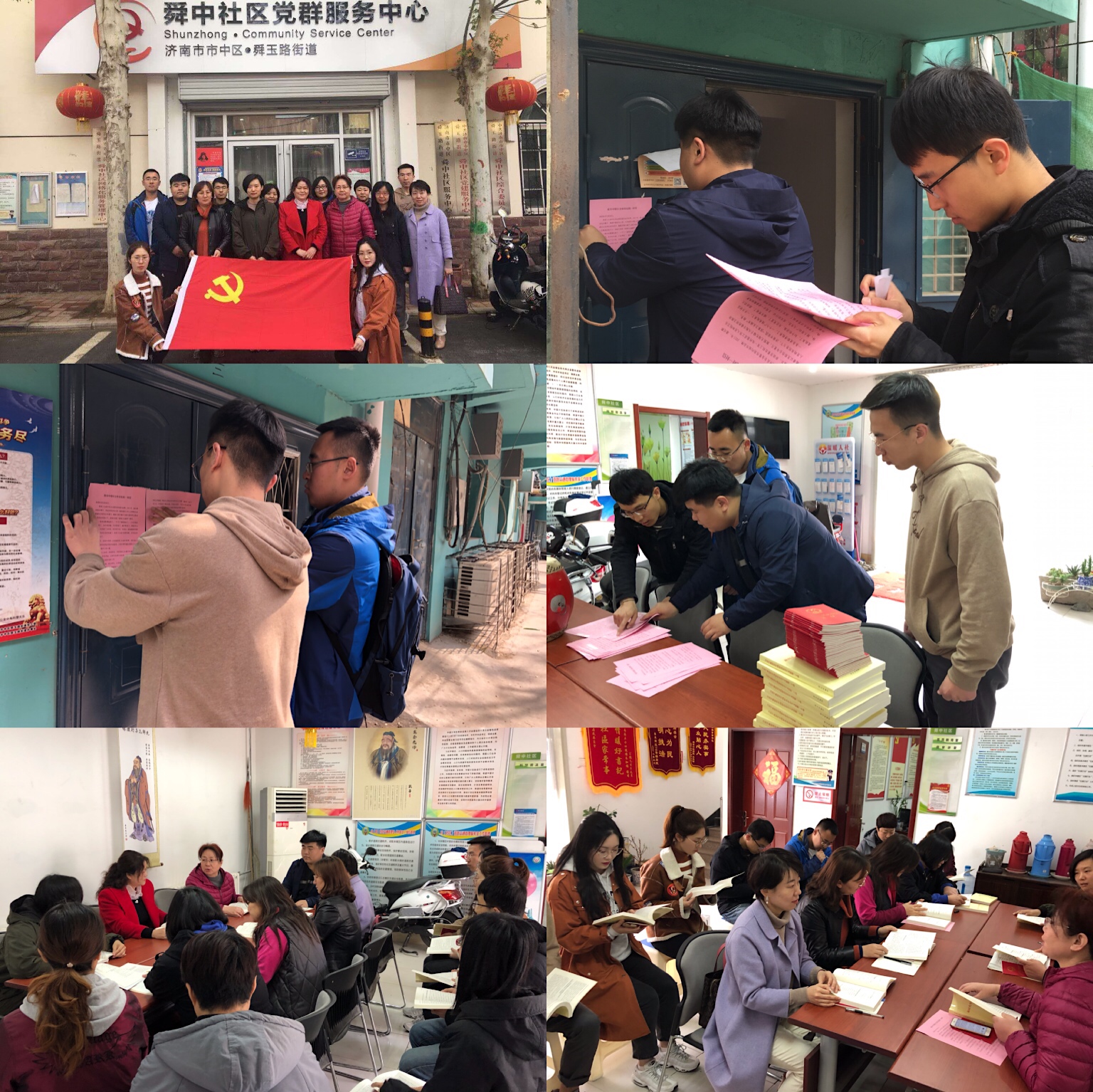 舜中社区党群服务中心副书记徐宏伟向在座的党员们交流分享了对习近平新时代中国特色社会主义思想的学习感悟,以及践行思想引领,落实社区服务的执行情况。随后,通过徐书记的讲解研究生党员们了解了社区居民的基本情况和现实需求,针对具体问题,党员们纷纷表示将会充分利用课余时间,发挥党员先锋模范作用,安排党员持续进行社区服务,继续深化学校与社区之间互帮、互助、互学、互进的和谐关系。舜中社区党群服务中心的同志们把自己对党的热爱、把自己对人民群众的责任心、对中国早期建设的回忆积极的与年轻党员分享,进一步促进我们对党员身份的理解,加强学生党员的服务意识、责任意识。交谈过后,大家走进社区,在社区每栋楼的每个单元门口张贴为迎接国家卫生城市复审的一封信,积极主动地宣传号召居民为我市顺利通过国家卫生城市复审贡献自己的力量。