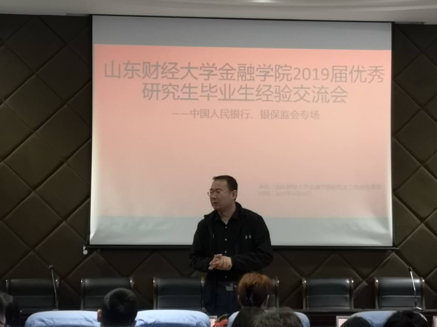 4月10日下午,由学院研究生会组织的第二届研究生毕业生献礼活动在金融学院学术报告厅举行。学院党委书记吴红文、副书记范志毅出席会议,研究生辅导员许静老师主持。此次交流会的主题为考取中国人民银行、银保监会专场,研一研二学生参加。