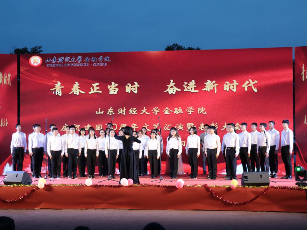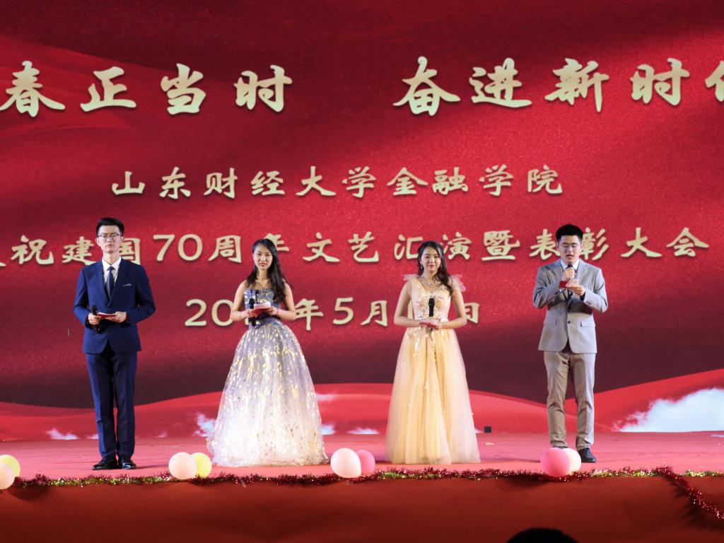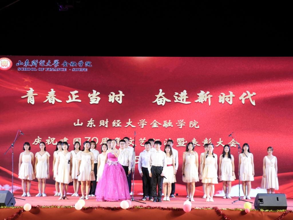 (通讯员:程芯珂)5月15日晚,金融学院在圣井校区举办“青春正当时,奋进新时代”庆祝建国70周年文艺汇演暨表彰大会。学校就业指导处、合作发展处、学生工作处、校团委有关负责同志,金融学院部分班子成员共同观看本次晚会。