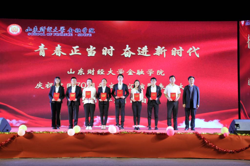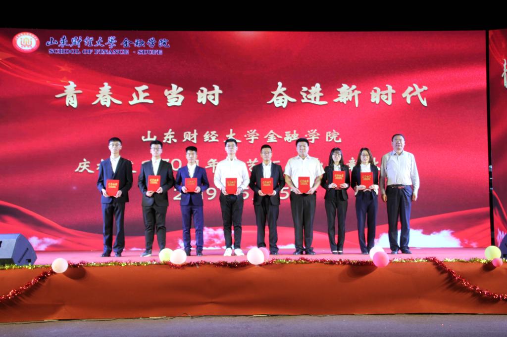 与会领导向金融学院国家奖学金、校长奖学金获得者,山东省优秀学生、财大最美青年、优秀班干部、优秀共青团员、“最美金融人”等获得者及团体进行了表彰,并为获奖者颁发了荣誉证书。