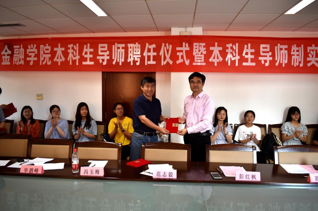 (通讯员:葛春杰)5月29日下午,金融学院于圣井校区明德楼举办本科生导师聘任仪式暨本科生导师制实施启动大会。院长彭红枫、副院长葛永波、冯玉梅及部分导师出席本次启动仪式,2018级创新实验班全体同学参会。会议由学院党委副书记范志毅主持。