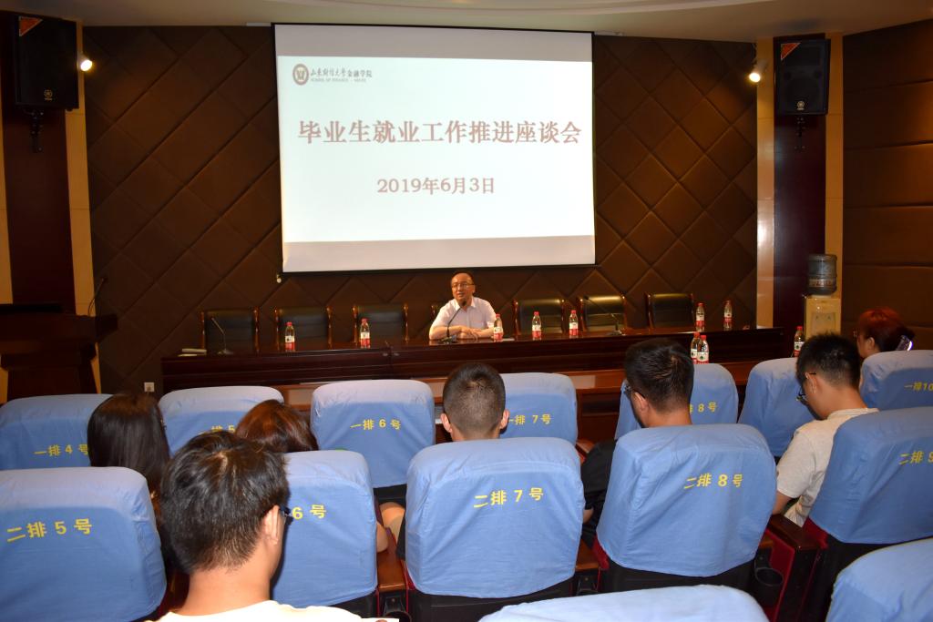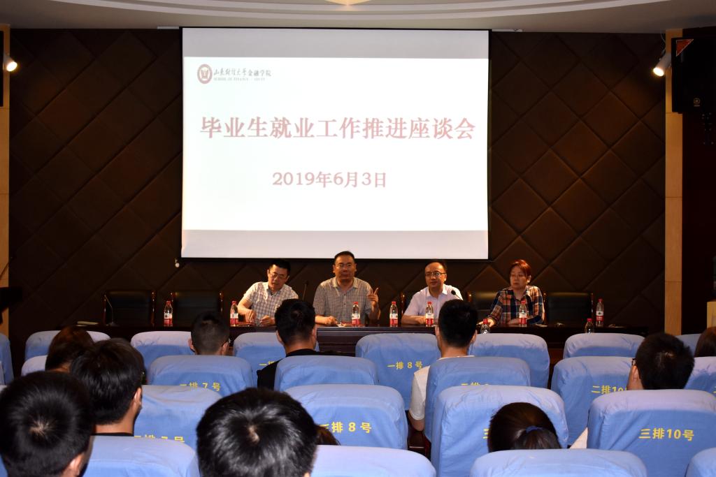 (通讯员:林宁萱)6月3日,金融学院在舜耕校区金融楼学术报告厅举办毕业生就业工作推进座谈会。校就业指导处副处长周广春,金融学院党委书记吴红文,学院党委副书记康亚通参加会议,毕业班辅导员及部分毕业生代表参加了座谈会。座谈会由学院党委副书记范志毅主持。