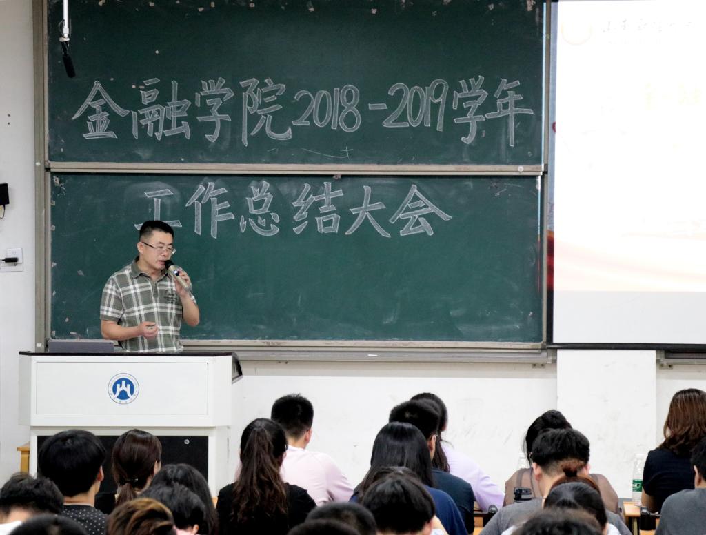 (通讯员:王潇)6月18日晚,金融学院在圣井校区明德楼召开学生会2018—2019学年工作总结暨述职大会,金融学院党委副书记康亚通、团委书记陈静参加会议,学院学生会各部门相关负责同学参加会议。