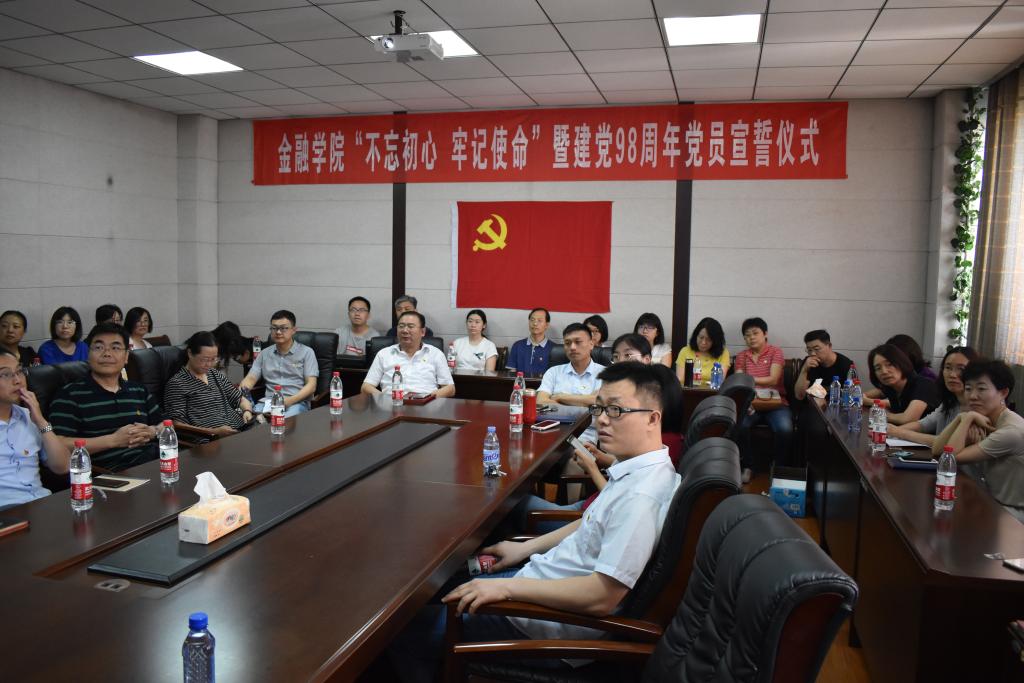 (通讯员:邵珠建)恰逢建党98周年纪念日,按照上级党委统一要求,金融学院党委在舜耕和圣井校区组织收看“灯塔大课堂”第一课,并举办学院“不忘初心,牢记使命”暨建党98周年党员宣誓主题党日活动。学院党委领导班子成员,全体无课教师党员和学生党员参加了活动。