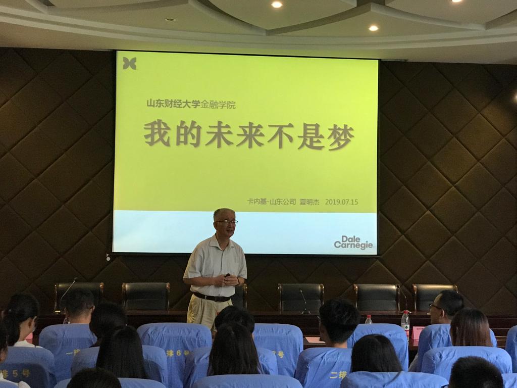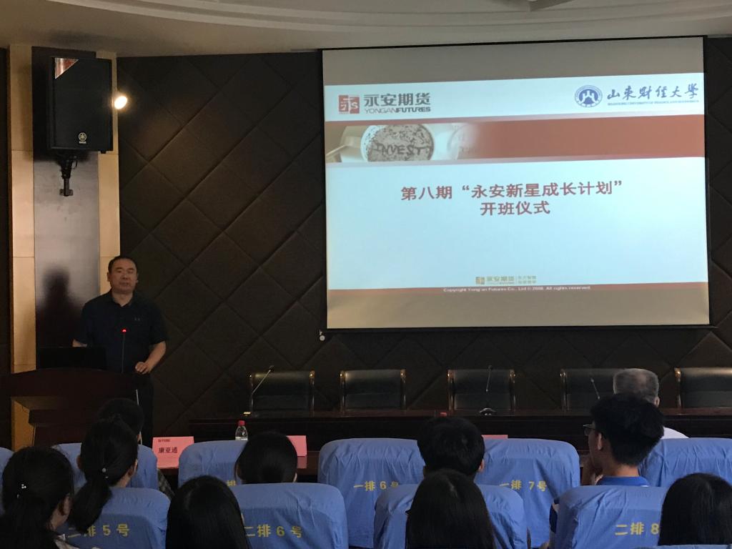 (通讯员:王亚男)为提高人才培养质量,帮助学生提升就业能力,7月15日上午,第八期“永安新星成长计划”培训班启动仪式在舜耕校区金融楼地下报告厅举行。金融学院党委书记吴红文、党委副书记康亚通、山东期货业协会秘书长王海然、永安期货山东分公司总经理李庆国、永安期货济南营业部总经理王开胜、永安期货优秀校友员工代表王秀玲女士,美国卡内基训练山东区董事长夏明杰、16级辅导员王丽、王亚男和培训班的同学们参加了启动仪式。