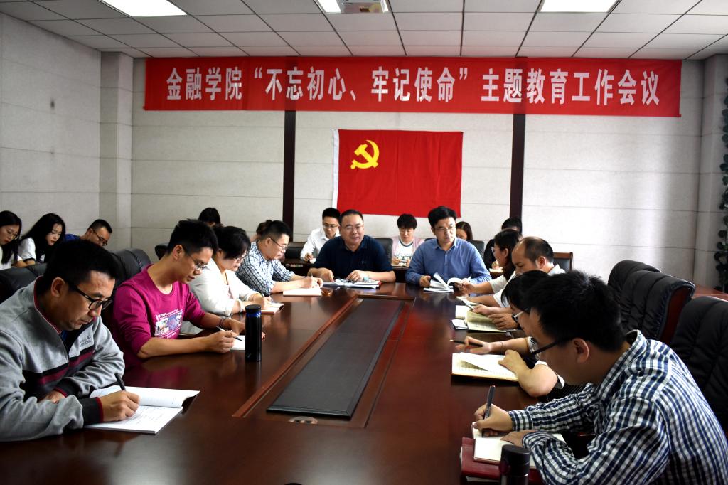 吴红文传达了学校“不忘初心、牢记使命”主题教育工作会议精神,希望学院全体党员干部聚焦学校主题教育工作,统一思想,增强认识,积极响应,全面学习,确保每一名党员都能主动接受教育,无例外、无缺课、无欠账。会上,吴红文对金融学院主题教育进行了部署,决定成立由党委书记任组长、副书记任副组长的主题活动领导小组负责指导和监督党支部及党员开展学习活动。