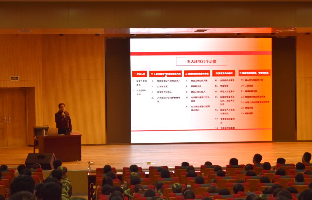 范书记向新生们介绍了学校及学院的发展情况,全面阐述了院校学生管理的规定和要求,向学生们传达了我院“三全育人”综合改革试点工作的“六位一体”育人理念,希望同学们积极配合学院试点工作,主动适应育人体系改革,为自身“成长、成人、成才”助力。随后,范书记重点介绍了我院在党建方面取得的成绩,以及目前金融学院党团发展情况。她强调,作为新时期的大学生,要充分认识中国共产党在中国革命和社会主义建设中无可替代的作用,要坚定不移地认同党的领导,为实现伟大复兴中国梦和“两个一百年”奋斗目标贡献青年力量。范书记还对入党的“5大环节25个步骤”进行了讲解,对新生的思想素质和政治素养提出了许多具体要求。