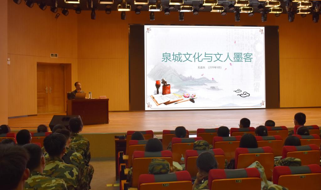 孔老师从济南的泉城文化入手,详细阐述了济南泉水文化和古代文人雅士,引领同学们认识济南红色文化,深入挖掘了这座历史文化名城的深厚底蕴和丰富多彩的风土人情。通过孔老师的讲授,既增强了新生们对济南的了解,又增强了大家对这座城市归属感和认同感。现场气氛活跃,掌声不断。
