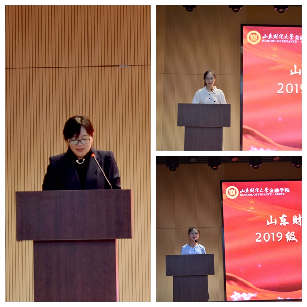 2019级新生代表李金鑫同学发言,她代表2019级新生向学院领导老师、学长学姐表示衷心的感谢,希望同学们能够继续秉持良好的学习态度,不松懈、不放纵,努力发挥自身特长,积极参与校园活动,提升综合能力,在以后的日子里将山财金融人的身份铭记于心,用青春诠释誓言,用汗水锻造辉煌,以梦为马,不负韶华。