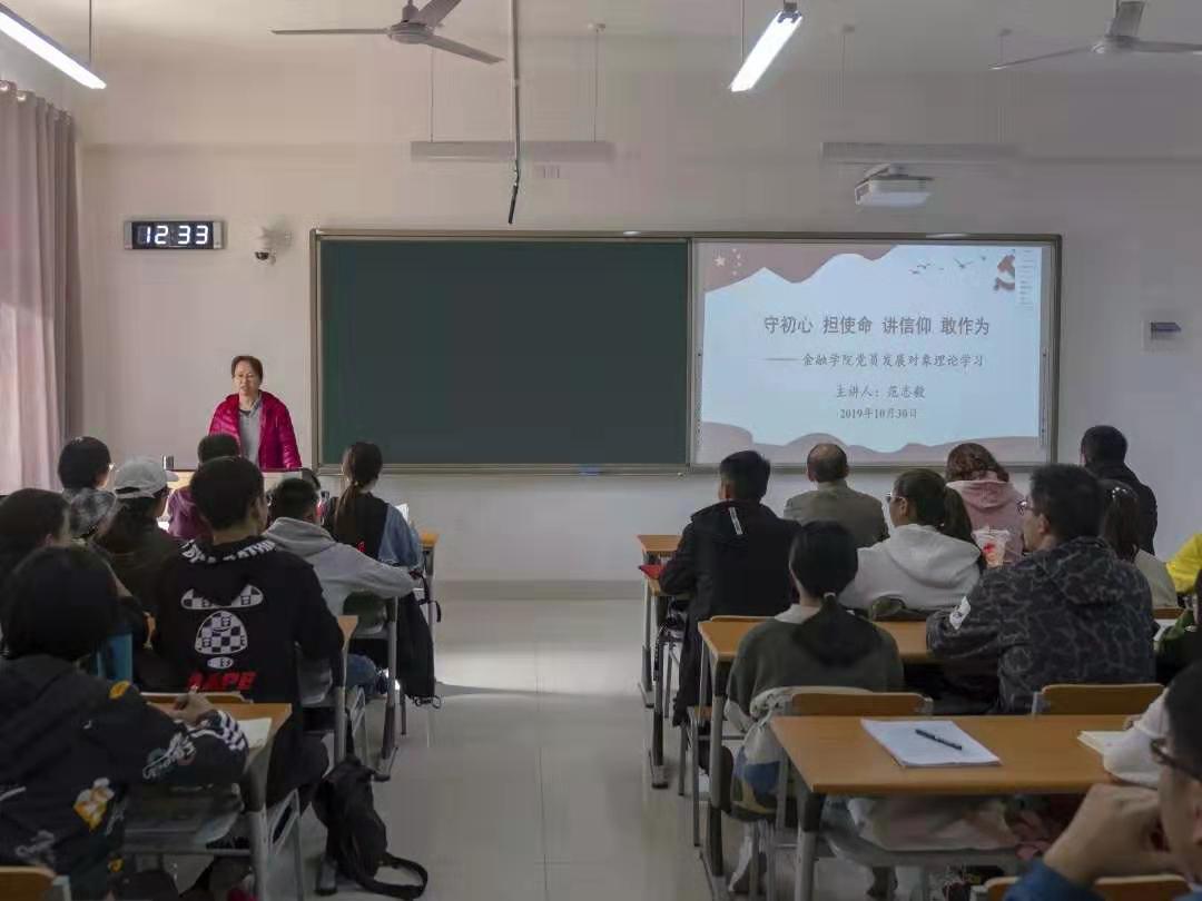 (通讯员:菅雨欣)为提高学生的党性修养,10月30日中午,金融学院在圣井校区7号楼405室开展了以“守初心,担使命,讲信仰,敢作为”为主题的党员发展对象第二次集中培训。本次培训由金融学院党委副书记范志毅主讲,我院圣井校区党员发展对象参加本次活动。