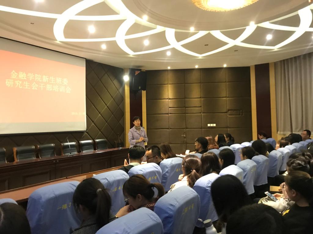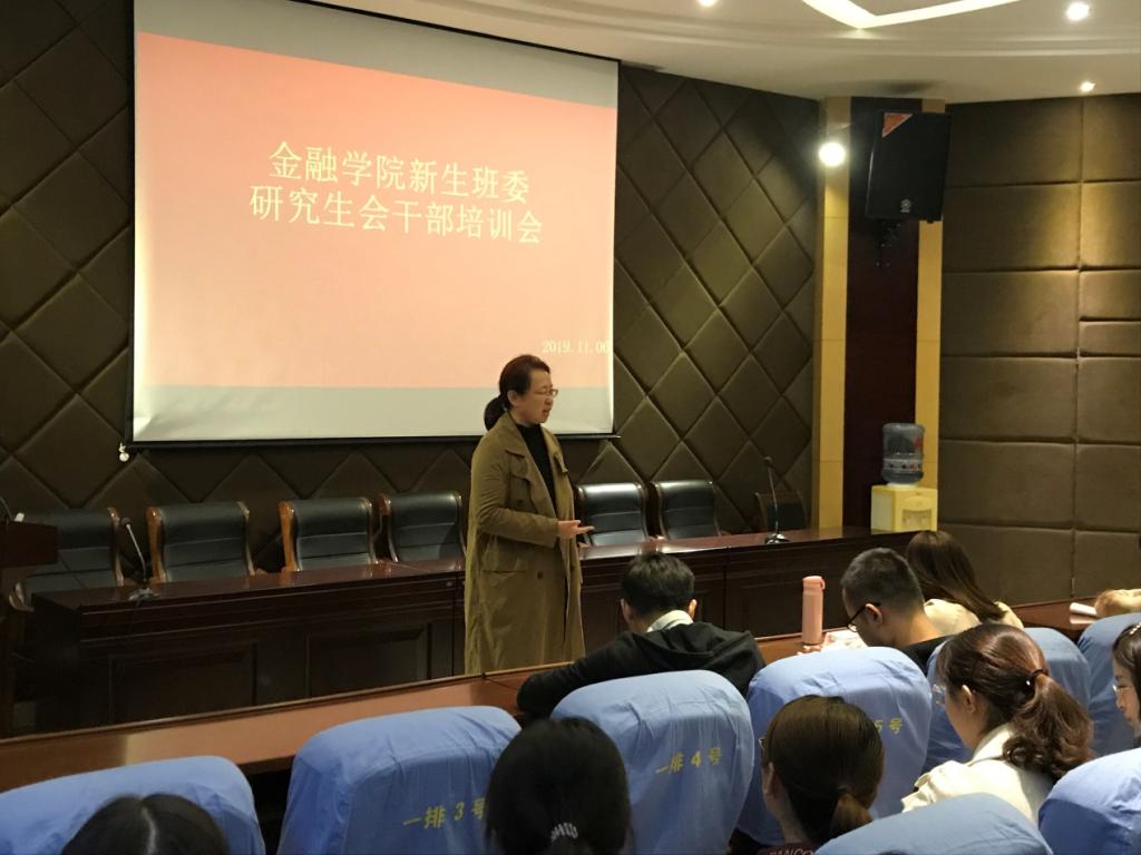 (通讯员:贾艳茹)11月6日下午四点半,金融学院在舜耕校区金融楼学术报告厅举办金融学院新生班委研究生干部培训会。学院党委副书记范志毅,辅导员许静参加培训会。学院第八届研究生会以及新生班委成员。