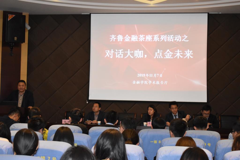 11月7日,齐鲁金融茶座系列活动走进金融学院,开展“对话大咖,点金未来”校友返校活动。金融学院党委书记吴红文,党委副书记范志毅参加了本次活动。活动由学院团委书记陈静和齐鲁晚报·齐鲁壹点财经新闻事业中心副主编张頔主持。