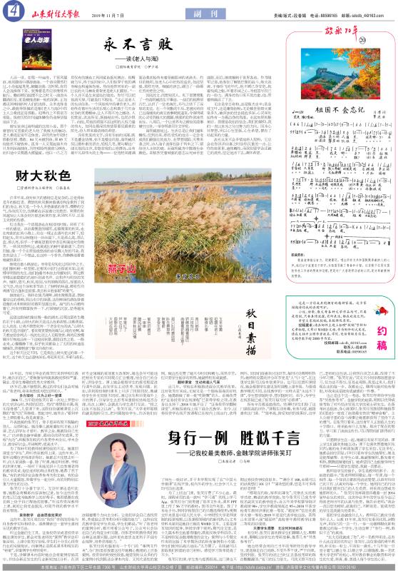 近几年,学校在积极推进混合式教学改革,这对张笑玎来说,无疑又是一个锻炼提高的好机会。她勇敢做了第一批“吃螃蟹”的人。由她负责的“证券投资学在线课程”已获得学校立项,在教务处支持下,2018年她开设了“证券投资学翻转课堂”,积极探索线上线下混合式教学。如今,证券投资学在线开放课程已在校内上线运行,获得了师生一致好评,并于本学期实现了在“中国大学慕课”在线开放,校内外的学生、社会学习人士均可自由选课。为了上好这门课,张笑玎费了不少心血。最初,课程采用的是一款叫“学习通”的线上学习App。张笑玎分门别类建了很多文件夹,课本PPT里上传了56万字的教材;图书文件夹里,放了7本电子书,供同学按照自己的兴趣选择使用;视频文件夹里是中国人民大学、中央财经大学老师录制的授课视频,以及课程领域内的新闻热点;文本资料夹里则是她自己做的WORD文本,主要是课本知识的延伸,供同学课下使用;期刊论文里,是十几篇本科生能看得懂的,既能反映学科前沿,又不是特别复杂数理模型的论文;案例与小专题文件夹则包括了本学期所讲的所有案例和小专题。学生们使用后高兴地说:“太方便了,在线就可以获取我们所需的学习材料,感觉学习效率提高了不少。”张笑玎的课,学生参与度都很高,这门课也不例外。同学们很喜欢讨论环节,每回讨论都特别热烈;她特别设置的评分环节更是“人气十足”,在这里学生既可以给本堂课评分,也可以反馈听课情况,她会根据学生意见及时调整上课节奏。与普通教学模式不同,在线教学的一大特点是“永远不下课”,学生想学随时学、想问随时问。如今,为学生在线答疑已成了张笑玎每天的“必修课”。所有辛苦都是值得的,结课时学生们给了这门课很高的评价,“课程生动有趣,有参与度,超级喜欢这门课。”“效率高,接受知识的效果好,这学期证券投资学收获很多。”“满分才100,如果可以的话我想打101分!”“喜欢您的课,您是不可多得的好老师!”“博观而约取,厚积而薄发”,凭借扎实的教学功底、精湛的教学技能,如今张笑玎已成为学校名副其实的教学能手:近五年来学校督导组评教成绩90+,学生评教成绩高达95+;2018年获学校青年教师讲课比赛一等奖、“超星杯”信息化教学大赛一等奖;2019年更是代表学校出战,获得山东省第六届“超星杯”高校青年教师教学比赛二等奖的好成绩。