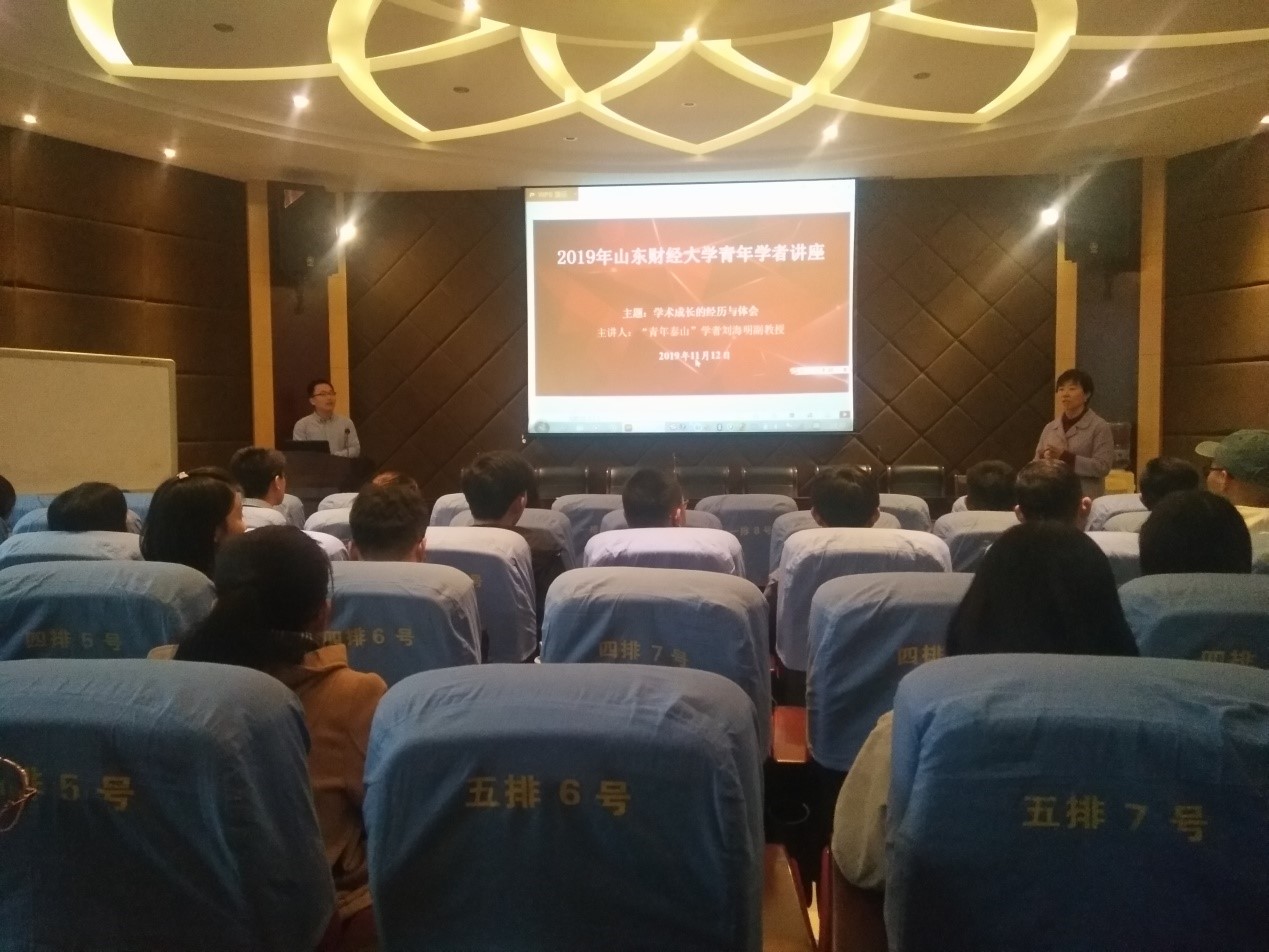 (通讯员 索慧 许静)11月12日下午两点半,金融学院在舜耕校区学院报告厅举办2019年山东财经大学青年学者讲座,邀请了“青年泰山学者”刘海明副教授做题为“学术成长的经历与体会”的讲座,参加讲座是金融学院全体研究生。讲座由许静老师主持。