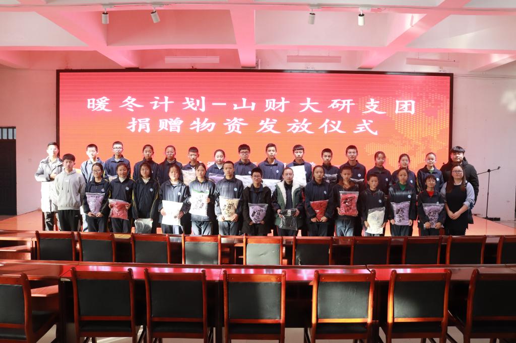 在支教学校和领导老师的交流中,王文浩得知本校虽是县城走读学校,但是仍有一部分学生家庭十分贫困,有的甚至温饱都成问题。王文浩向自己学院领导汇报了支教学校情况,金融学院在得知这些情况后,号召师生发起了一场暖冬助学活动。支教学校共收到棉衣23件,笔记本115本,全部分发到了家庭贫困、品学兼优的学生手中,在寒冷的冬天带给他们一丝温暖。