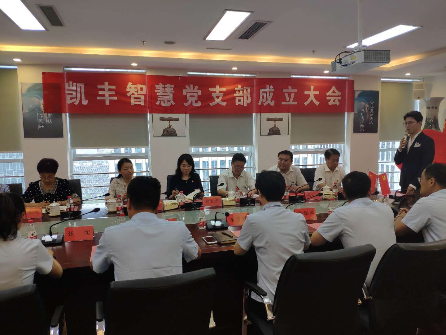 (通讯员:李勇)6月9日,凯丰智慧(山东省)市政工程有限公司党支部成立仪式在济南汉峪金谷A2-4隆重举行。济南市民营经济发展局机关党总支组织处副处长郑吉杰,济南市工商联合会市非公经济组织党委书记刘延国,山东财经大学金融学院党委书记吴红文,齐鲁软件园综合党工委第五党委副书记娄芹兰,汉峪金谷党委书记孟广福,齐鲁软件园党建专员,凯丰公司董事长米雪睿及公司党员、入党积极分子出席成立仪式。吴红文和米雪睿共同为党支部成立揭牌。
