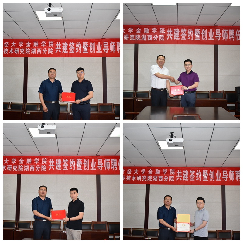 随后,康亚通与山东产业技术研究院湖西分院签署社会实践基地协议,吴红文与王浚泽为社会实践基地和“三全育人”教育实践基地揭牌,并为王浚泽、邓学飞、田潇和田晓行颁发山东财经大学金融学院就业创业导师聘书。