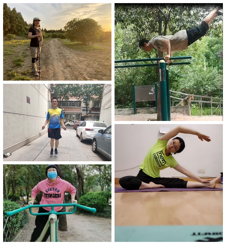 (通讯员:许 静)6月18日,金融学院工会按照学校工会的统一安排,组织教职工开展“强身健体战疫情,心系家国爱校园”活动。教职员工积极响应号召,利用宅家的时间,结合自己的身体状况和居住条件,开展各种形式的全民健身活动,老师们有些在家中、有些在校园、有些在小区健身广场自行开展健步走、瑜伽、跳绳、健身操等等活动,积极锻炼身体,愉悦身心。大家在活动中按照疫情期间要求佩戴口罩、保持间隔,做好防护,圆满地组织了这次特殊时期的工会活动。通过活动使广大教职工更加坚定战胜疫情的信心,更加以饱满的热情投入到教育教学工作中去。