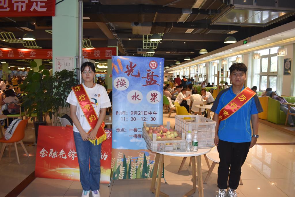 为增强我校全体学生的节约意识,积极响应“厉行节约,反对浪费”倡议,金融学院联合饮食服务中心于9月21日在圣井各餐厅组织“光盘”免费换水果活动。部分学生及新生家长参加此次活动。