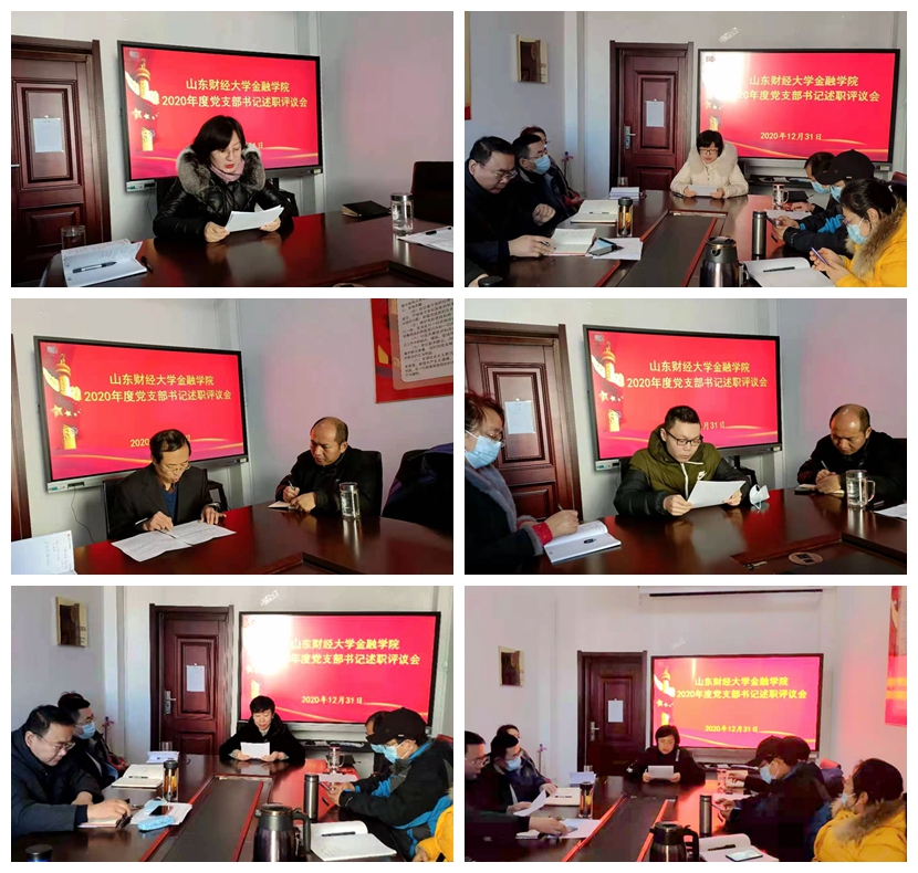 为进一步加强党支部建设,提高党支部书记履职尽责能力,12月31日上午,金融学院党委在舜耕校区金融楼6214会议室召开2020年度党支部书记述职评议会。党委书记吴红文,党委副书记范志毅、康亚通,学院教工和学生党支部书记参加会议。