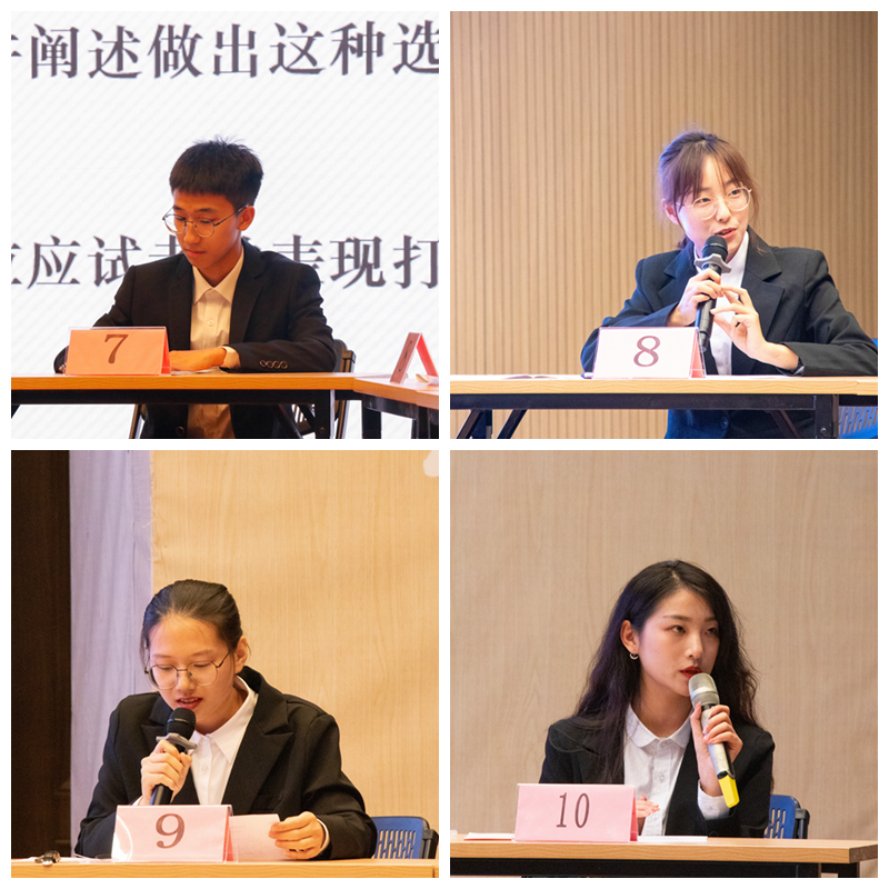 首先,活动现场播放第九届职业能力素质拓展月掠影,带领大家共同回顾了第九届职业能力素质拓展月的精彩瞬间。决赛过程中,来自全校的10位选手分别进行了个人陈述、小组讨论、代表总结三个环节。选手们的语言表达能力、随机应变能力、娴熟的处理方式和较强的团队协作意识赢得了现场评委和观众们的一致好评。最终,金融学院2019级金融学2班宋晓宇获得一等奖;金融学院2018级金融工程4班王祥、管理科学与工程学院2019级信息管理与信息系统(大数据与商务分析)卓越班付伊杰获得二等奖,经济学院2019级经济学4班刘雪丽、公共管理学院2020级公共管理类4班姜泽伍,金融学院2020级金融学类1班李墨白获得三等奖。评委李洪升、柏宝春等分别对选手们的场上表现、解题思路及讨论技巧进行了精彩点评。
