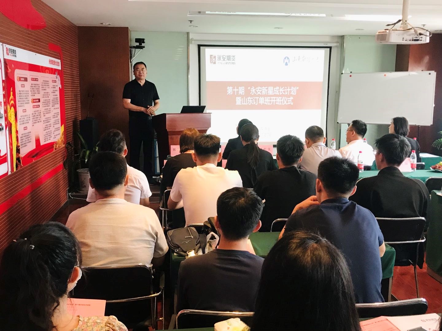 7月12日,第十期“永安新星成长计划”培训班启动仪式在永安期货山东分公司会议室举行。金融学院党委书记吴红文、永安期货山东分公司总经理李庆国、卡内基训练济南公司总经理郑公霞、山东恒信集团人力资源部部长兼法务部部长任迎宾、山东恒信集团总裁办公室主任梁艳、永安期货潍坊分公司经理王洪彪、王秀玲,金融学院辅导员郭夕熙以及往期学员代表刘夏颖和培训班的同学们参加了启动仪式。
