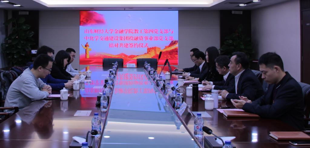 11月26日,金融学院教工第四党支部与中化学交通集团有限公司投融资事业部党支部在中化学交通集团有限公司举行党支部共建签约座谈会。金融学院副院长冯玉梅、中化学交通建设集团投融资事业部党支部书记欧阳力胜、教工第四党支部书记陈彬彬和部分党员代表,和全体党员参加座谈会。