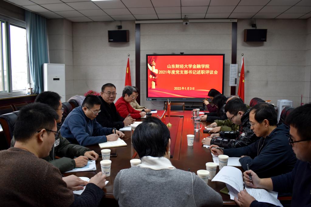 (通讯员 李勇)为进一步加强学院党支部建设,落实全面从严治党,提高党支部书记履职尽责能力,1月3日上午,金融学院党委在舜耕校区金融楼第三会议室召开2021年度党支部书记述职评议会。党委书记吴红文,党委副书记范志毅、康亚通,学院教工和学生党支部书记参加会议。会议由吴红文主持。