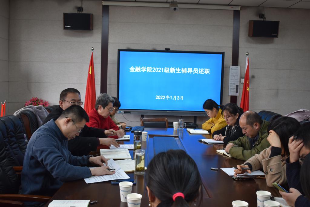 (通讯员:徐洁)1月3日上午,金融学院在舜耕校区金融楼第三会议室组织2021级新生辅导员述职会议,学院党委书记吴红文、党委副书记范志毅、康亚通全体辅导员参加了本次会议。