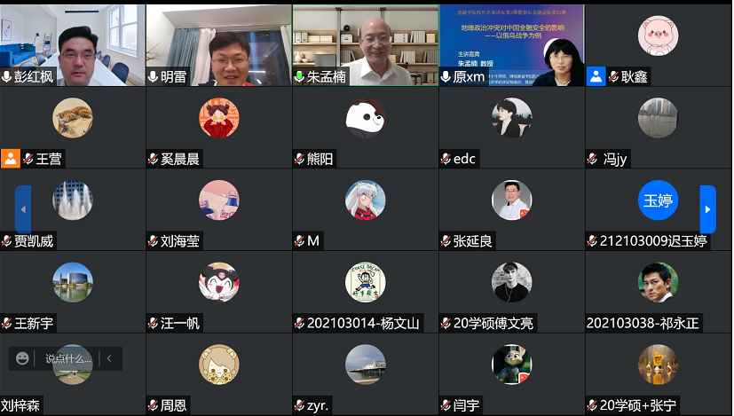 (通讯员:耿鑫)6月1日晚,由山东财经大学金融学院、山东财经大学科研处、山东省金融产业优化与区域管理协同创新中心共同主办的山东财经大学70周年校庆暨合并建校10周年系列讲座在腾讯会议线上平台顺利举行。厦门大学继续教育学院院长朱梦楠教授作了题为“地缘政治冲突对中国金融安全的影响——以俄乌战争为例”的讲座,本次讲座由金融学院院长彭红枫教授主持,学院部分教师及在校生60余人参加,其中济南大学金融研究院院长原雪梅教授、湖南大学金融与统计学院明雷副教授应邀参加。