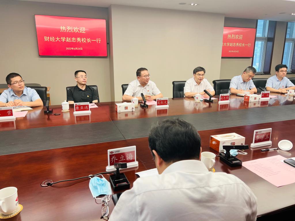 为贯彻落实党中央、国务院关于高校毕业生就业工作的决策部署,根据山东省教育厅访企拓岗促就业专项行动工作要求,6月24日下午,校长赵忠秀带领金融学院有关负责人赴山东钢铁集团有限公司开展访企拓岗促就业活动。山钢集团党委书记、董事长侯军,党委常委、总审计师王鸿飞,山钢金控有限公司党委书记、董事长黄振辉等领导参加活动。