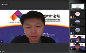 主题演讲第三阶段由山东财经大学经济研究中心副主任(主持工作)刘海明教授主持。中央财经大学金融学院院长张学勇教授、中南财经政法大学人才办副主任碳交易与碳金融研究中心主任庄子罐教授和南开大学金融学院王博教授分别做了题为《Carbon Risk and Currency Returns》、《碳税政策、最优收入再分配与经济低碳转型》和《数字化转型与企业可持续发展绩效——微观机制、异质性特征与宏观调节作用》的报告。