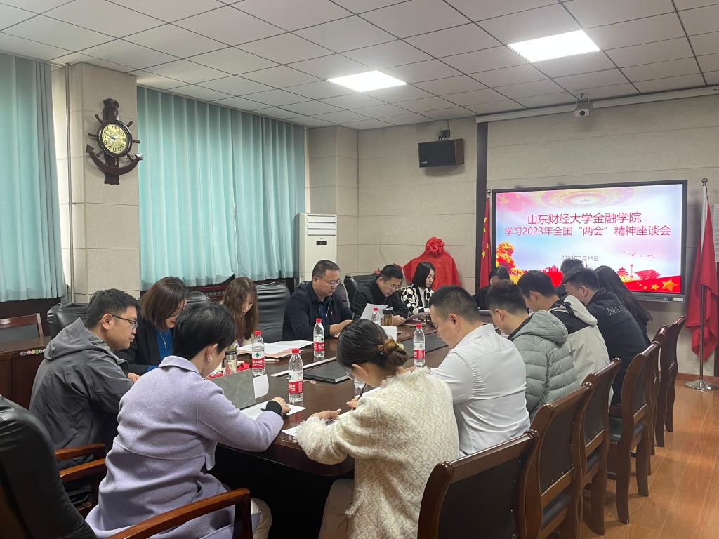 为深入学习贯彻党的二十大精神,第一时间传达学习全国“两会”精神,3月15日,金融学院召开学习2023全国“两会”精神座谈会。金融学院党委书记吴红文,党委副书记康亚通,金融科技系杜娟博士,团委书记郭夕熙,研究生辅导员许静,党委组织员邵珠建,本科新生辅导员王蕴玮及部分学生代表参加会议。座谈会由党委副书记康亚通主持。