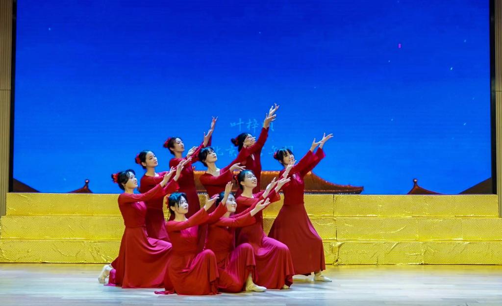 同学们的歌声青春洋溢、振奋人心,唱出了新时代青年的风华正茂,把内心深处的赤诚之情化作流淌的涓涓旋律,扣动师生们的心弦,带来充分的视听享受,凝聚了我辈青年勇往直前的奋进力量。中场时间,金融学院舞蹈队、啦啦操队带来舞蹈《万疆》。《万疆》盛放万丈霞光,触动起师生们心底心底最深沉的中华情。随后,金融学院主持人队带来《红旗颂》,铿锵顿挫的朗诵燃起澎湃的奋斗力量,让师生们热血沸腾。