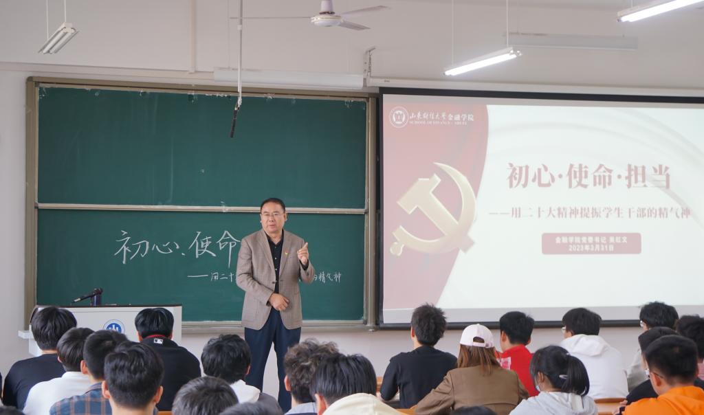 为深入学习贯彻党的二十大精神,不断提高学生干部的思想觉悟,3月31日,金融学院党委书记吴红文在圣井校区做了题为“初心 使命 担当”党的二十大精神宣讲会。金融学院各年级班长、团支书等主要学生干部聆听了宣讲。