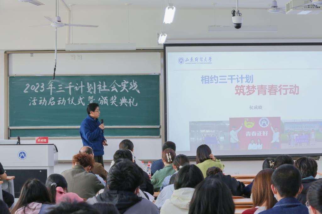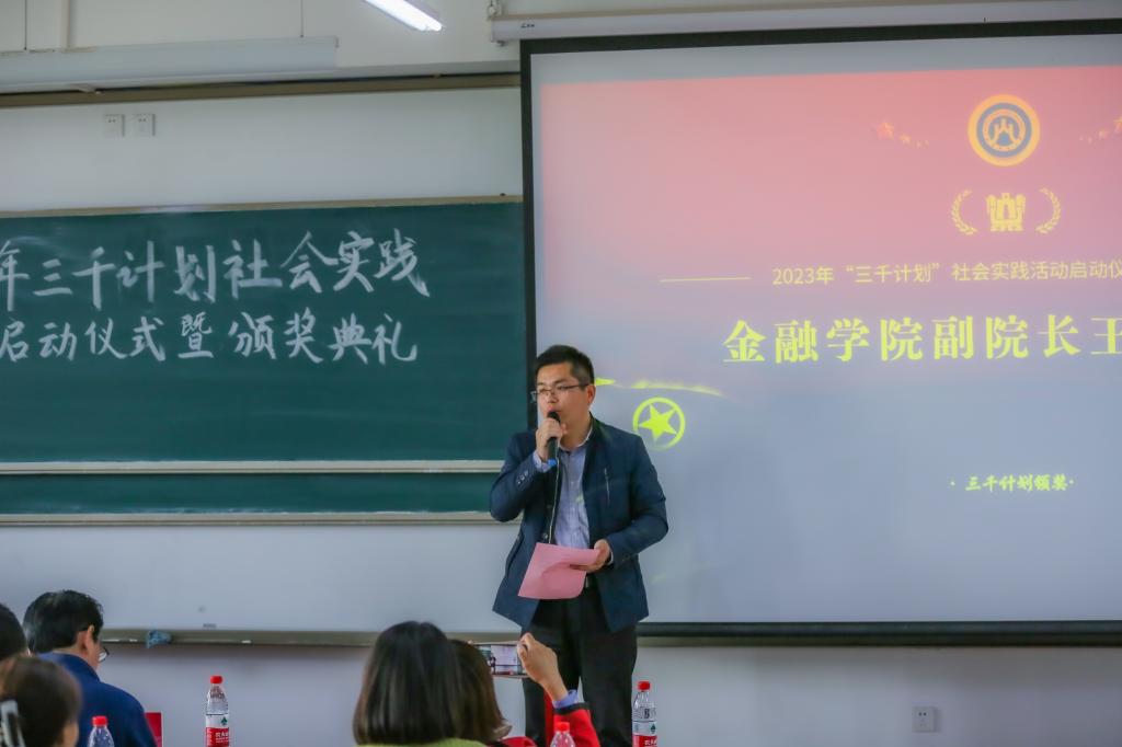 为深入学习贯彻党的二十大精神,进一步引导广大青年学生在社会实践中受教育、长才干、做贡献,4月11日,金融学院于圣井校区举办2023年度暑期“三千计划”社会实践活动启动仪式暨颁奖典礼。金融学院副院长王营、指导教师代表侯成晓、学工办主任李勇、团委书记郭夕熙、辅导员王亚男老师、王蕴玮老师出席。获奖团体、个人及部分学生代表参加了本次活动。