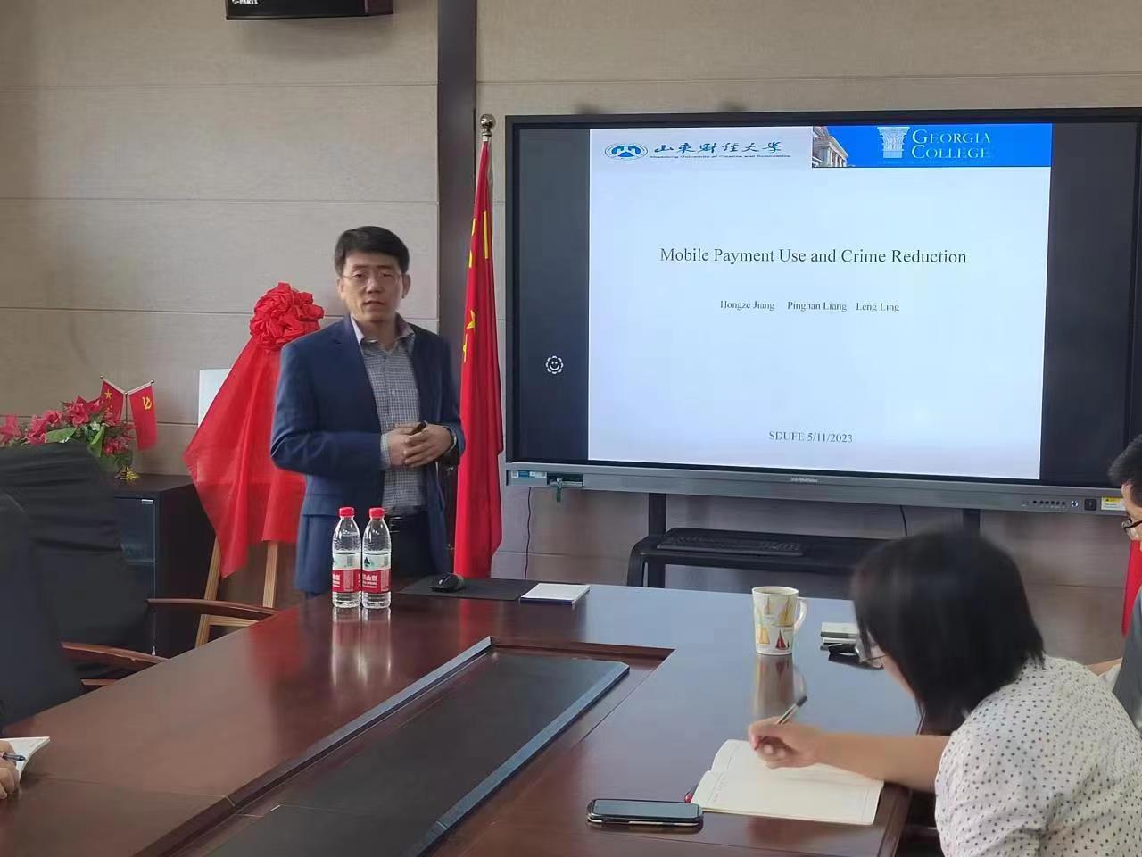 (通讯:曲诞雪)2023年5月11日上午,由山东财经大学金融学院、山东财经大学金融国际研究中心和山东省金融产业优化与区域管理协同创新中心共同主办的第32期“泰山金融讲坛”在舜耕校区6号楼314会议室举行。本次讲座邀请到了美国Georgia College & State University金融学终身教授、山东财经大学特聘教授凌崚老师分享题目为“Mobile Payment Use and Crime Reduction”的科研成果。讲座由金融学院副院长王营教授主持,部分教师和研究生到场聆听。