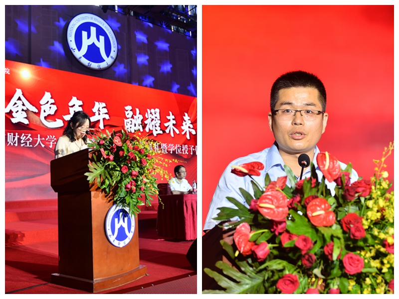 金融学院副院长王倩、王营分别宣读了2023届本科生毕业的决定和博士、硕士研究生毕业的决定,并向大家送上祝福和希望。