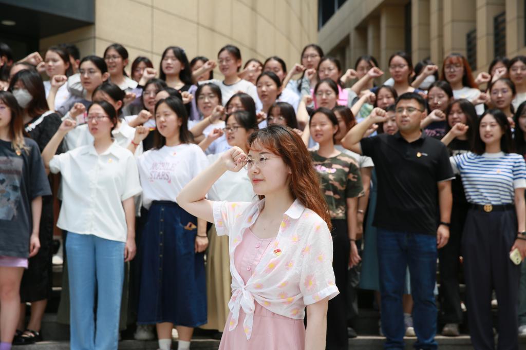 宣誓完毕后,王蕴玮激励同学们要坚持接续奋斗,要有能吃苦、肯担当的精神和勇气,要将青春奋斗融入到自己的日常生活和生命中,为国家和社会的发展贡献青春力量。同时,她提到,我院党委书记吴红文时常鼓励师生党员,要敢于亮出党员名片,强化身份意识,践行全心全意为人民服务的宗旨,要以坚定的理想信念砥砺对党的赤诚忠心。