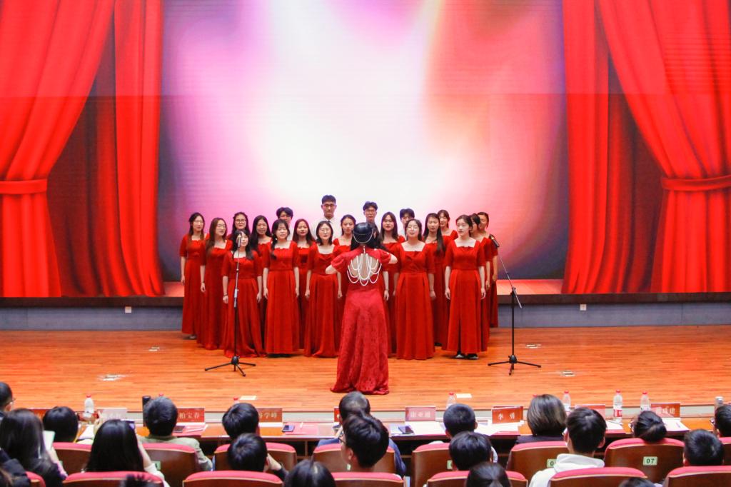 接着,金融学院融光合唱团带来了合唱《梨花又开放》,用轻柔悠扬的歌声表达了对山财大学子的美好祝愿。