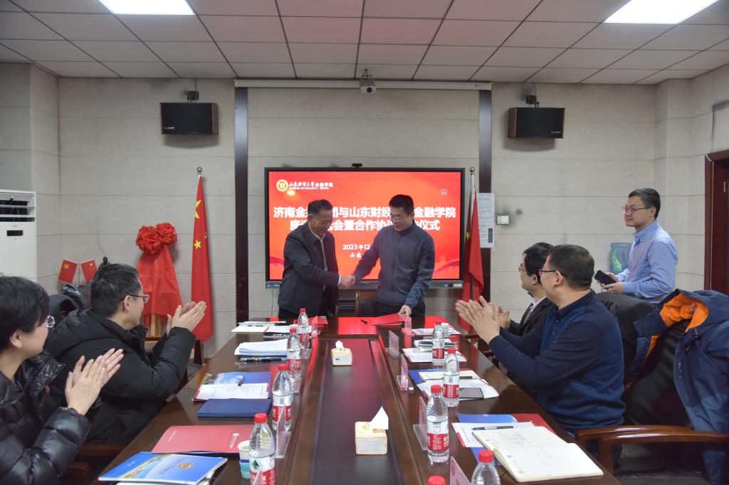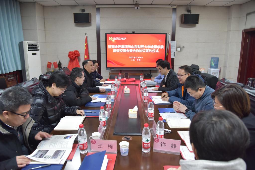 会谈结束后,双方举行了校企合作签约仪式,学院党委副书记康亚通与济南金控集团纪委书记申世红共同签署协议书。随后,济南金控集团与金融学院研究生签署实习协议,并就实习相关问题进行交流。