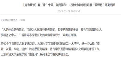 齐鲁壹点等多家媒体报道我院“雷锋月”系列活动