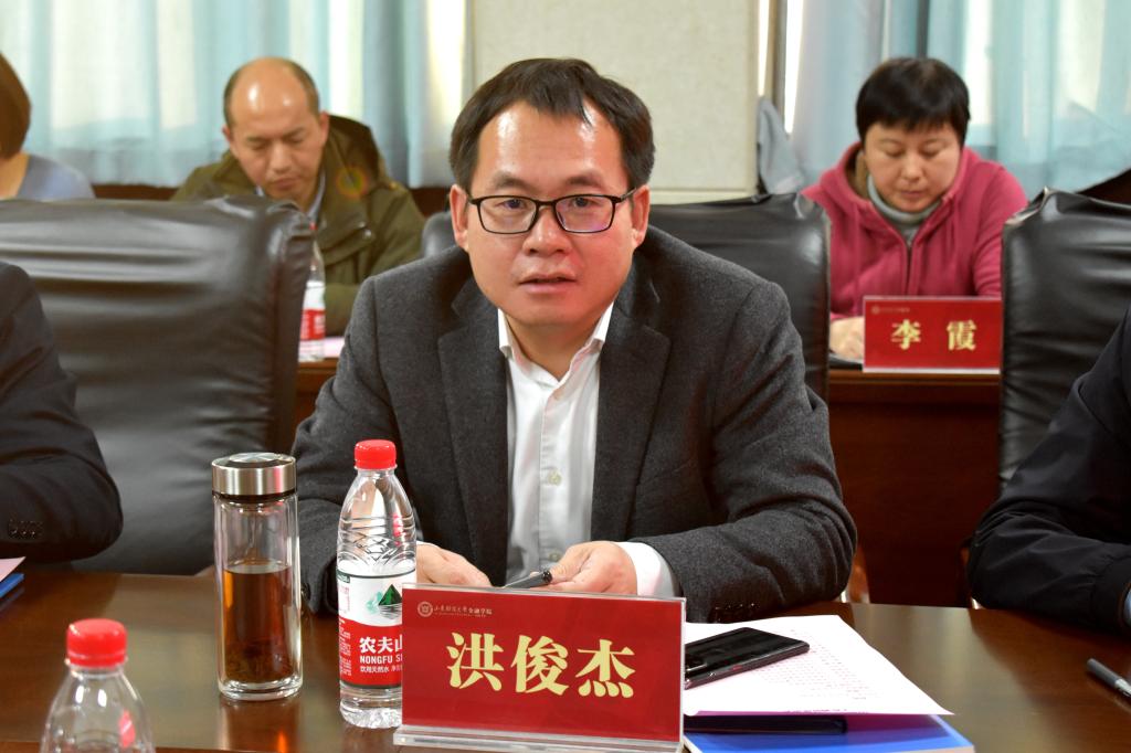 洪俊杰听取汇报后,对学院取得的长足进步给予了充分肯定。他指出,金融学院已经进入改革发展的“爬坡攻坚期”,对学院未来发展提出了更高的目标和要求。对于学院发展,洪俊杰强调,金融学院要主动对接国家金融强国战略需求,创新发展思路,探索新质发展路径,坚持“主流+特色”发展模式,找准发力点,努力提升学科影响力和学术话语权;要强化数据库建设,打造金融特色品牌优势;要强化有组织科研团队建设,善于借力发力,培养优秀的中青年科研骨干,踏实科研,久久为功,努力形成一批优秀学术成果;要组织高水平学术论坛,主动参与全国性的学术组织,为学院进入全国学科发展前列而蓄力。