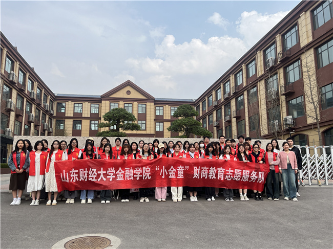 4月1日,济南市历城区港沟街道田庄村选调生韩资治、周欣宁,在历城区仁轩小学迎接了山东财经大学金融学院“小金童”财商教育志愿服务团队。