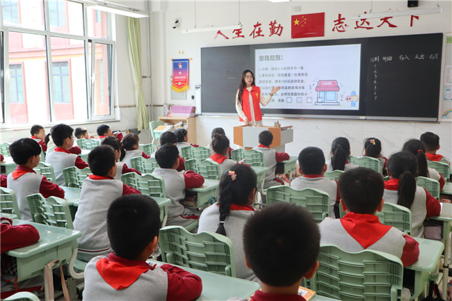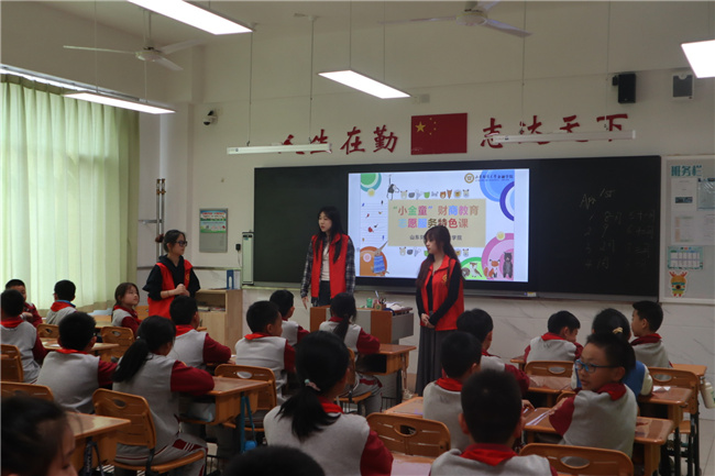 金融领域资深从业者背书、丰富的宣讲实践经验、因材施教的教学理念……“小金童”团队授课为不同年级制定不同教案,进行财商教学和防骗科普。本次宣讲,山东财经大学金融学院团委派出了7支志愿服务队,共计50余人,覆盖近400名学生,为仁轩小学3-5年级的孩子上了一堂别开生面的特色主题班会。课堂上,志愿者们寓教于乐,以情景模拟、仿真演练等形式,围绕收入与支出、投资决策推演等主题展开教学,让小朋友们在模拟理财、收支记账练习的过程中,提升了对货币概念、消费行为的认知。