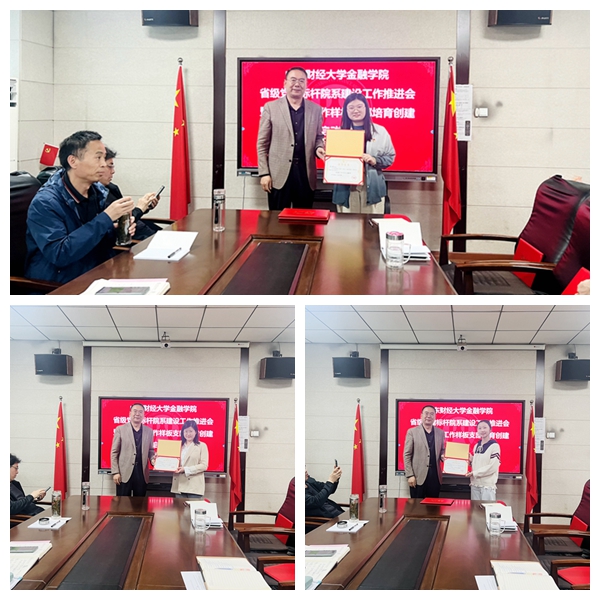 吴红文表示在学校党委的领导和支持下,金融学院党建“双创”工作取得长足进步,在获批全省新时代高校党建标杆院系的基础上,研究生第三党支部又成功获批全国党建工作样板支部。这既是对学院近些年党建工作的肯定,也对继续深化党建工作提出了新要求、新任务,为学院党建工作迎来了新阶段、新征程。对于接下来学院党建工作,吴红文提出六点要求。一是用“三全育人”理念,统筹推进学院党建工作。党建“双创”工作是系统工程,要坚持全员、全程、全方位工作理念,让全体党员参与进来,共同促进学院党建工作提质增效。二是坚持以点带面,点面结合。要发挥各级样板党支部的示范引领作用,对标“七个有力”,强化支部共建,提升支部组织活力,凝聚起打造一流党建的强大力量。三是守正创新,继续深化党建与业务工作融合。要不断创新党建工作形式和方法,敢于动真碰硬,勇于实践探索,不断增强党组织的创造力、凝聚力和战斗力。四是勇于创先争优,强化典型选树。要在师生党员中开展创先争优主题活动,设立党员先锋岗、党员标兵宿舍等,强化党性教育,发挥党员先锋模范作用。五是全面部署,整体推进建设工作。要强化党建工作一盘棋思想,以标杆党委和样板支部建设为引领进一步促进学院党建工作规范化、科学化、标准化水平。六是凝聚合力,擦亮党建工作品牌。要继续夯实党建基础,打造高品质党建工作品牌,用高质量党建推动学院高质量内涵式发展。