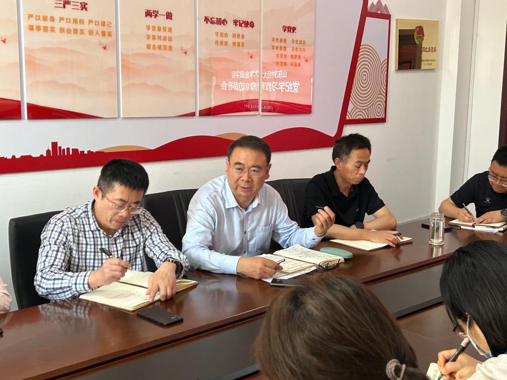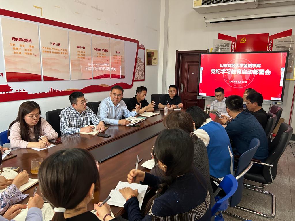 4月18日,金融学院在舜耕校区召开党纪学习教育启动部署会。学院党委书记吴红文、副书记康亚通、李开传及全体党支部书记参加了会议。
